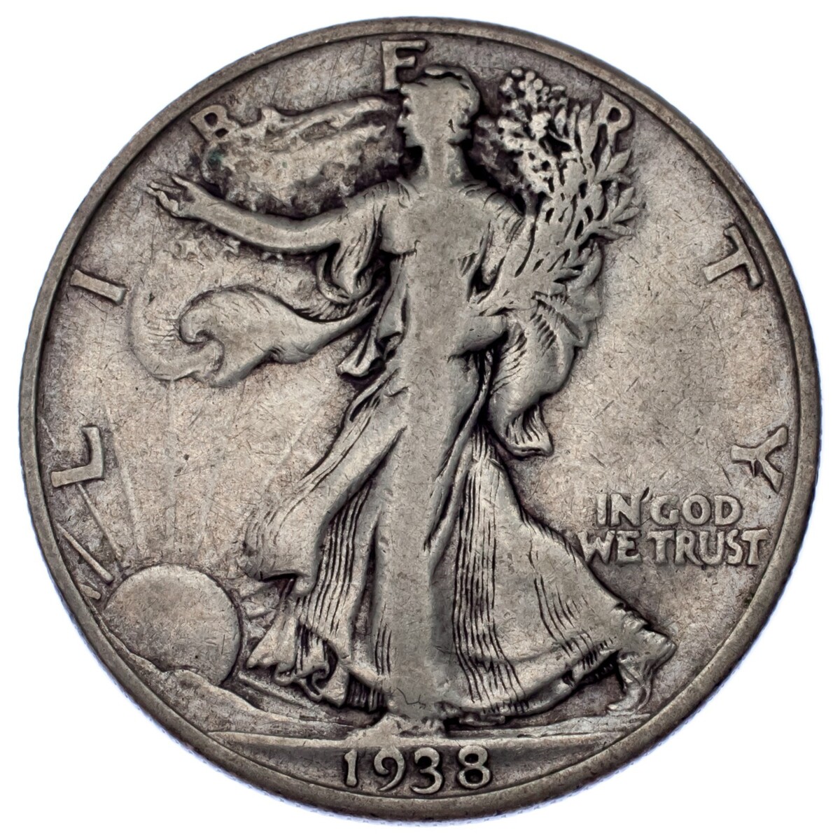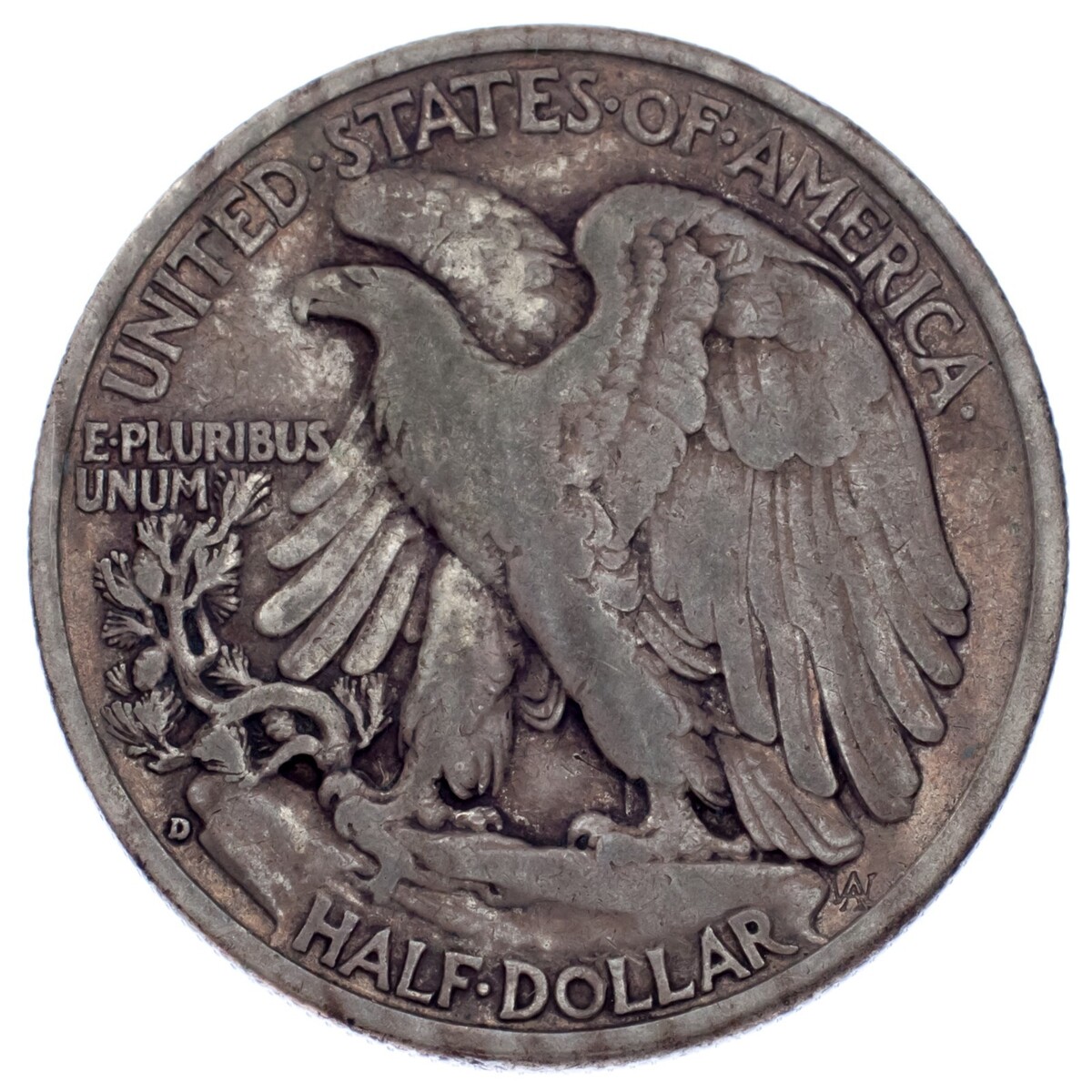 1938-D 50C Walking Liberty Half Dollar Fine Condition, Natural Color Nice Detail