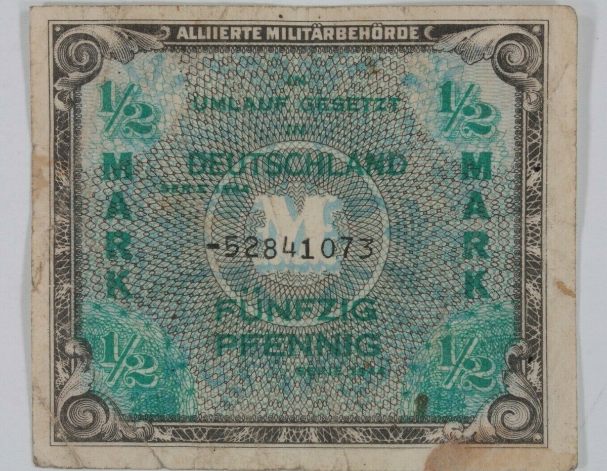 Banconota da 50 Pfennig della Germania del 1944 // 1/2 Marco Valuta dell'occupazione alleata // Seconda Guerra Mondiale