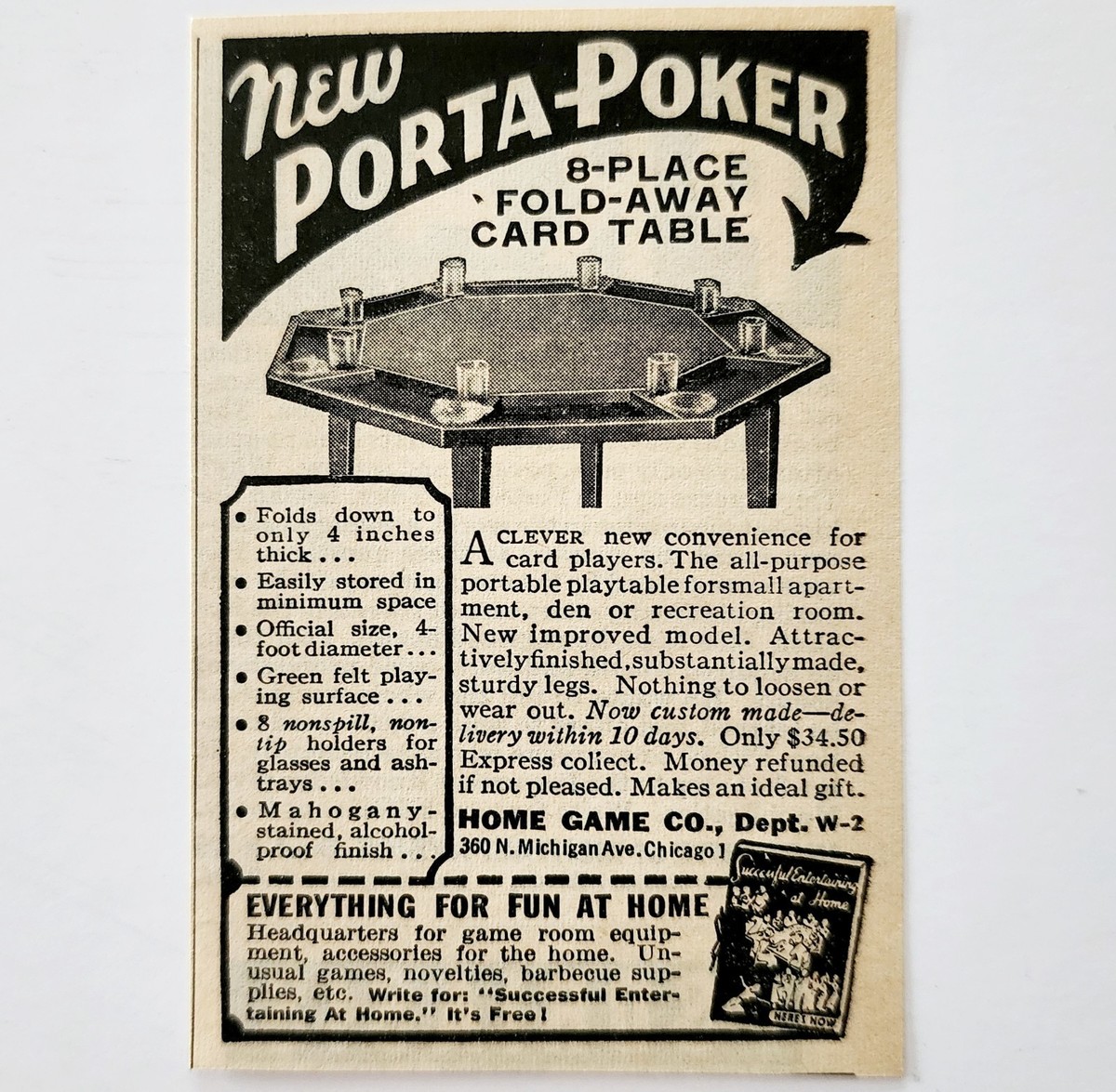 Primary image for 1944 Porta Poker Card Playing Table Octagon Advertisement Home Games Co F8A