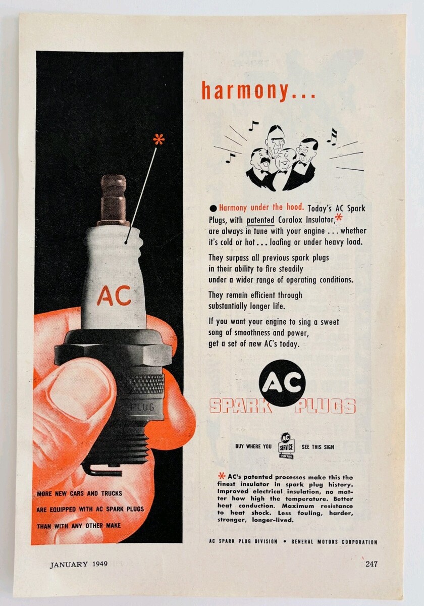 Primary image for 1949 AC Spark Plugs General Motors Advertisement Vintage Automobilia E8L