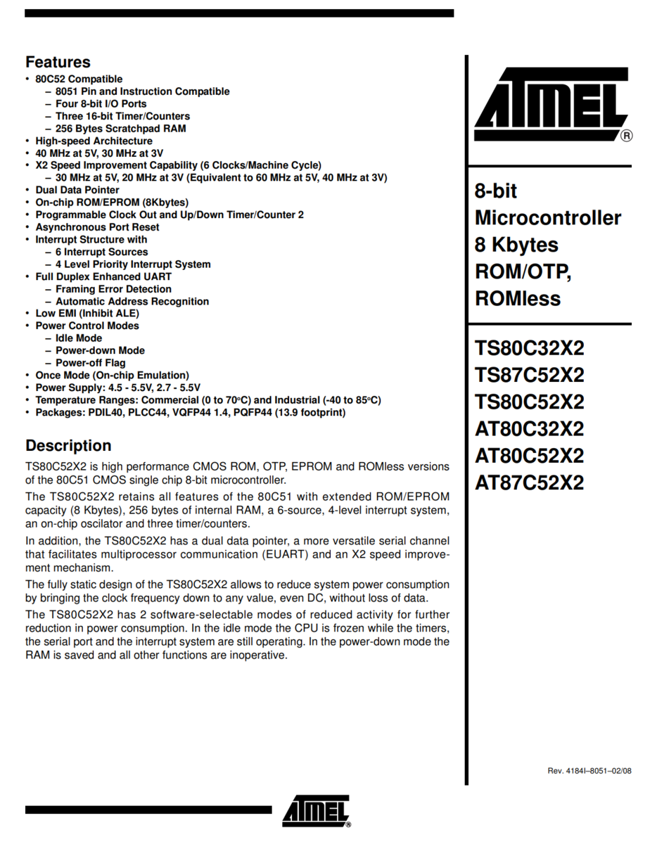 Primary image for 1X TS80C32X2-MCB ATMEL ROMless 8 Bit Microcontroller 256B RAM PLCC-44