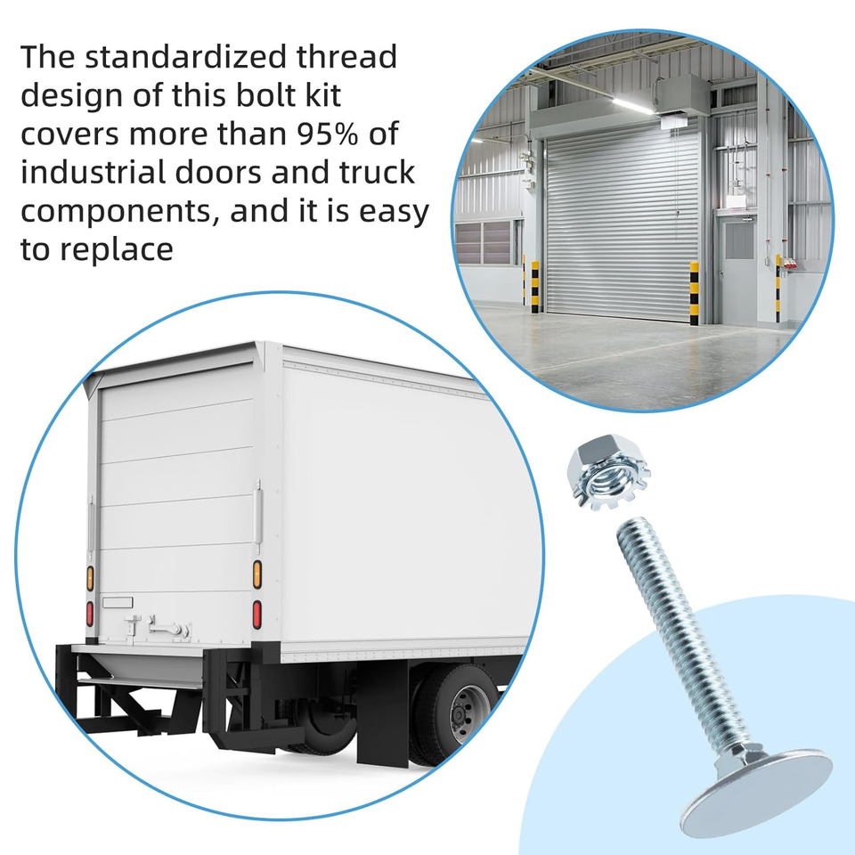 Standardized thread design fits over 95% of truck and industrial door components, making repairs quick, efficient, and cost-effective.