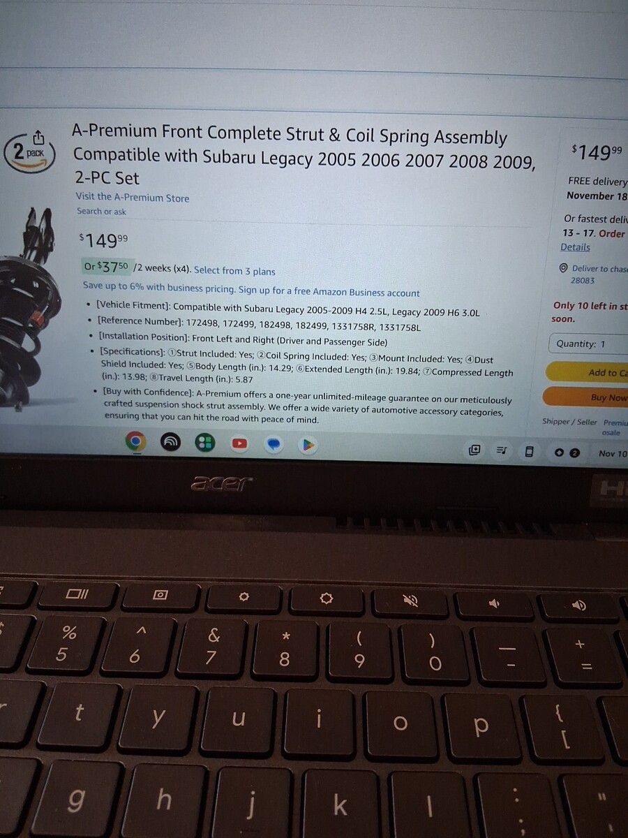 - 2 Pcs Front Struts Shocks Coil Spring Assembly For Subaru Legacy 2.5L 2005-2009