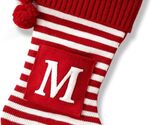 - 20 Inches Initial Christmas Stocking Monogram Striped Christmas Stocking M-red
