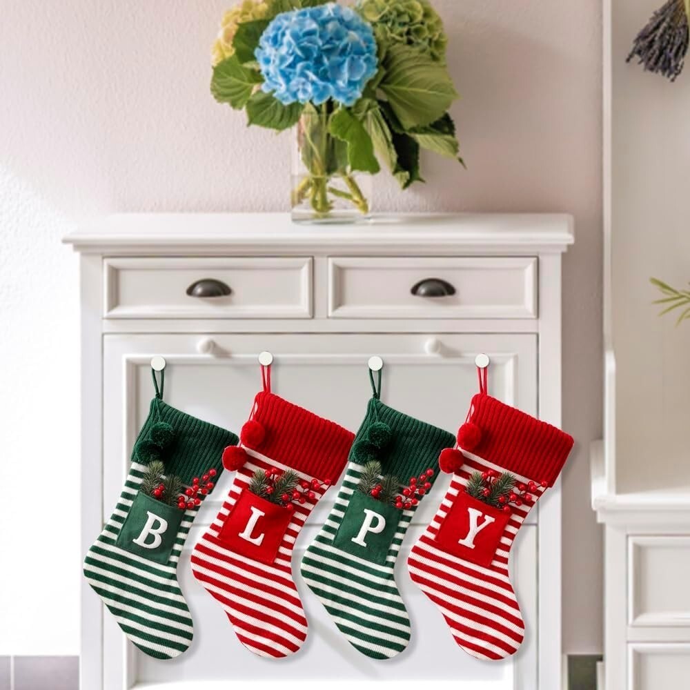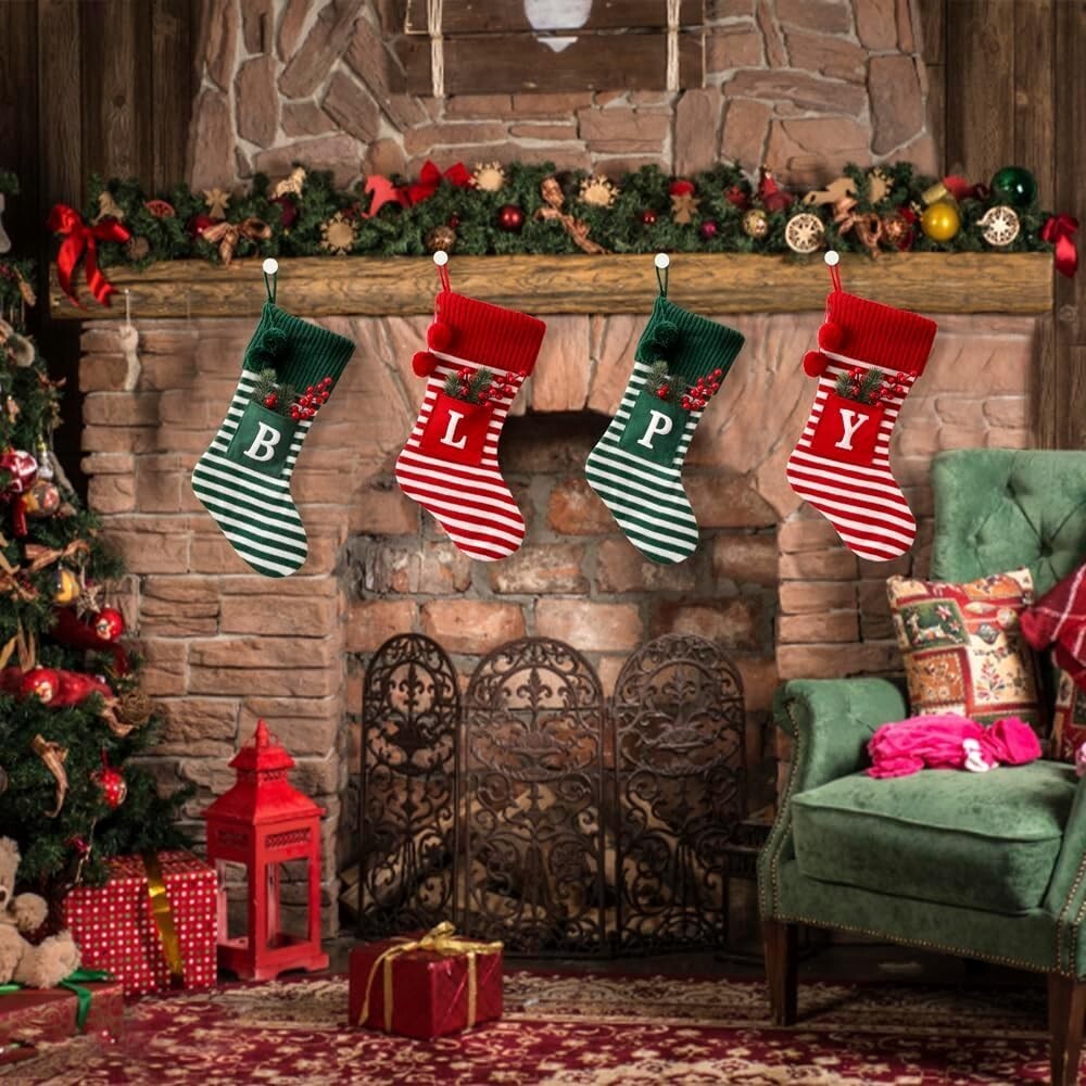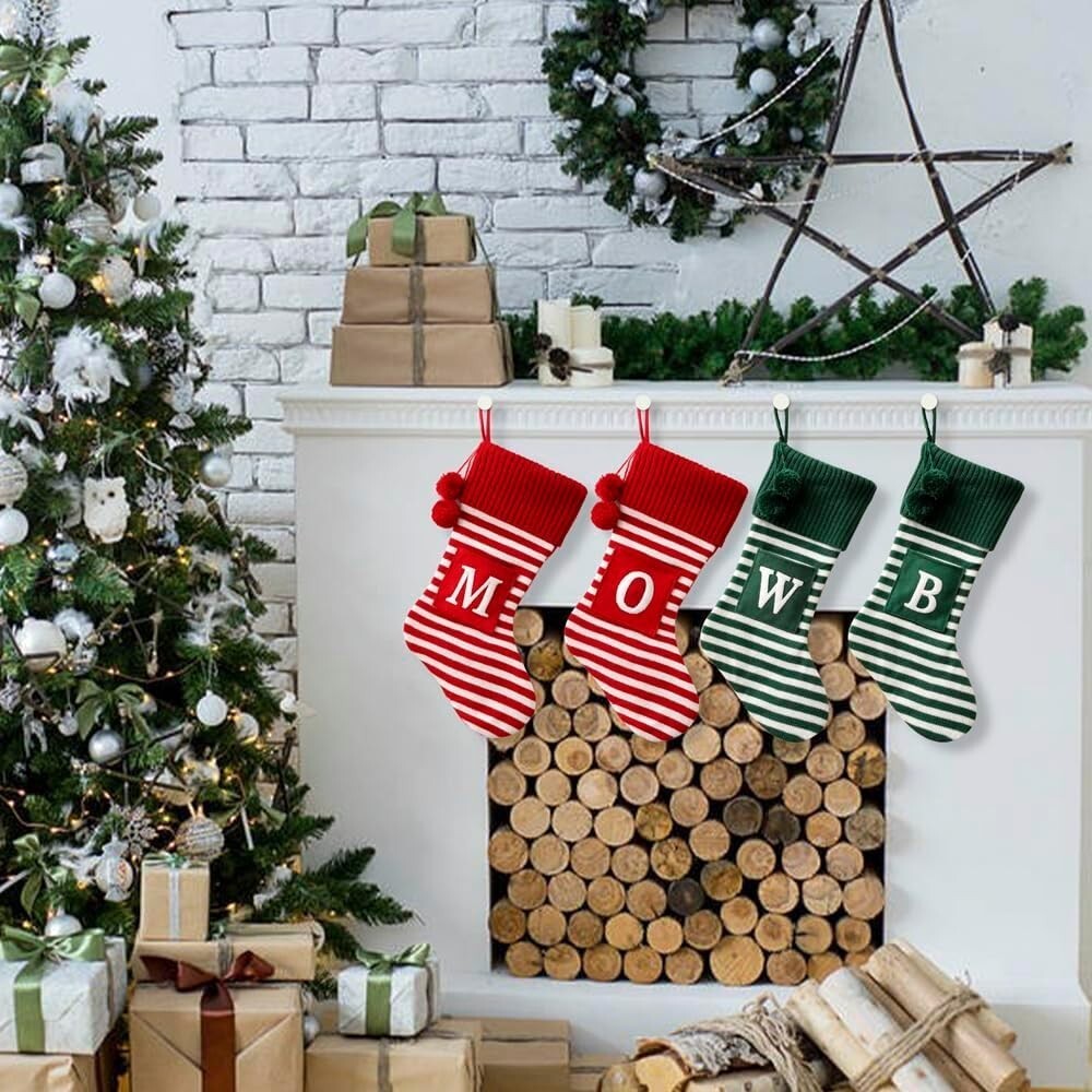 Unique designed,adopting white red green knit style,soft textured ball garlands enhance the overall design of the stockings. superior quality Embroidered Letter giving a luxurious temperament. The christmas stockings are very soft and comfortable. It's perfectly for christmas tree or fireplace decorations. Come with a Pockets and a sturdy hanging loop for easily hung by the fireplace, mantel,banister,doors,christmas tree, hotel, club, bar and so on.