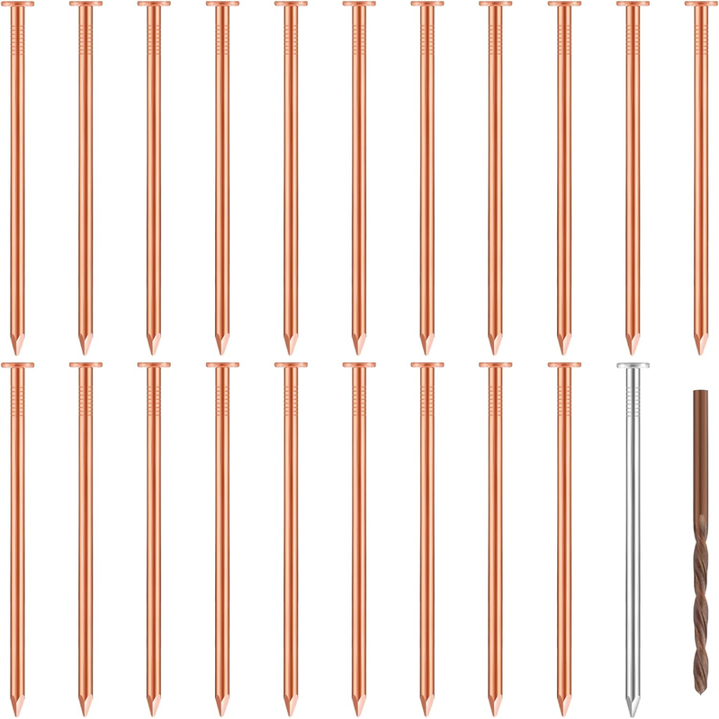 20 Pcs Copper Nails for Killing Trees, Stumps Roots - 3.5 Inch Long Come with Steel Nails Drill Nails Enabling the Copper Nails to Drive into the Stump without Bending (3.5 Inch, 20 Pcs)