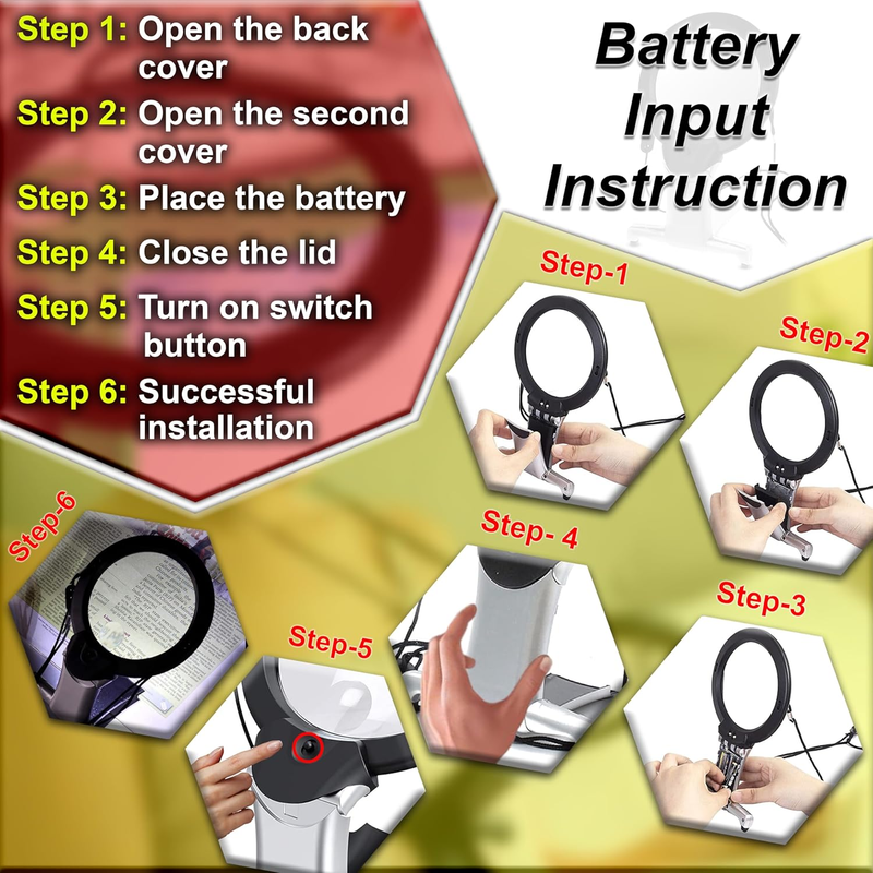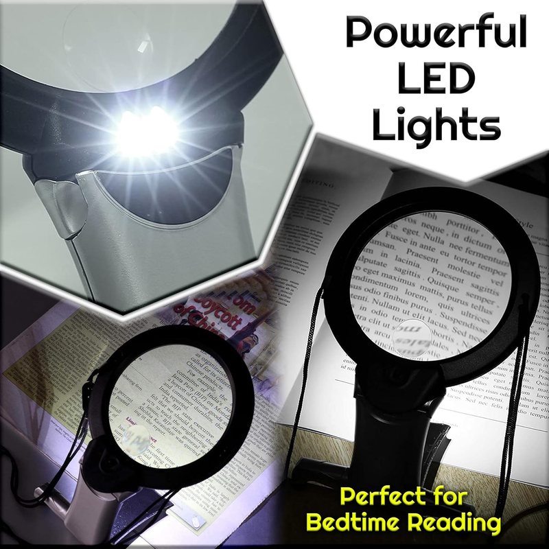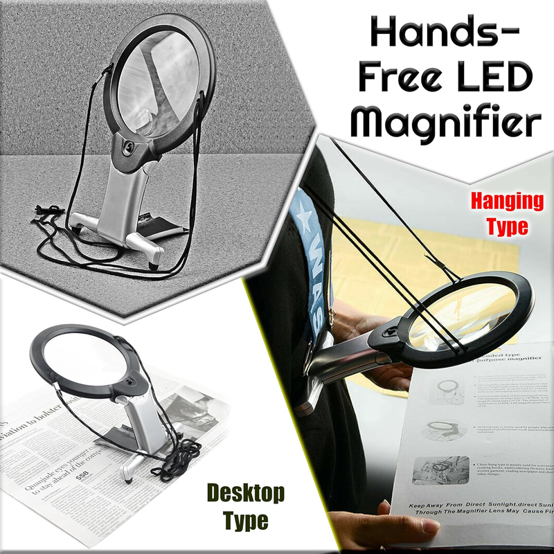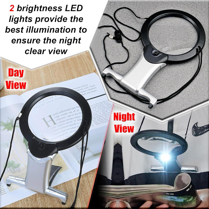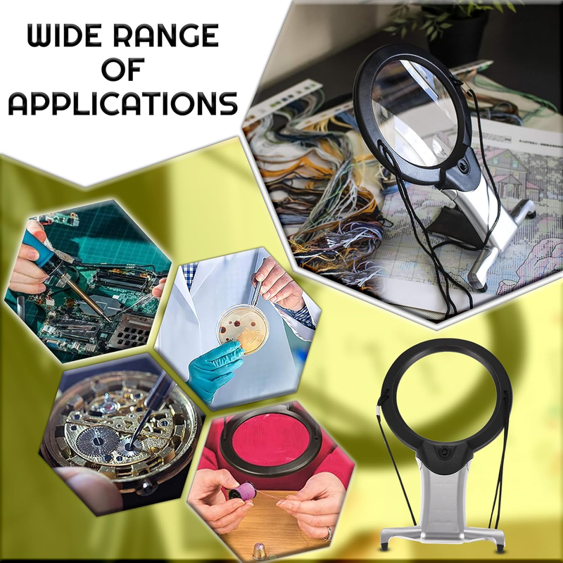 ? Crystal-Clear, Distortion-Free Vision ? See every detail with ease using this magnifier with light hands free, designed to provide sharp, distortion-free magnification for reading, crafting, and precision work. Ideal for hobbies, sewing, and even as magnifiers for seniors, it offers a large, clear lens for effortless viewing. Paired with bright LED lighting and a stable base, this versatile magnifying glass with stand ensures maximum clarity and comfort for all your close-up tasks.Say goodbye to eye strain with these versatile magnifying glass with light for effortless close-up work