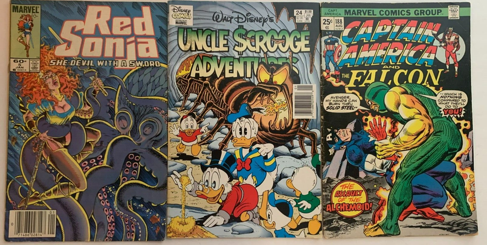 - 3 Issue Comic Book Lot: Captain America and the Falcon, Red Sonja, Uncle Scrooge