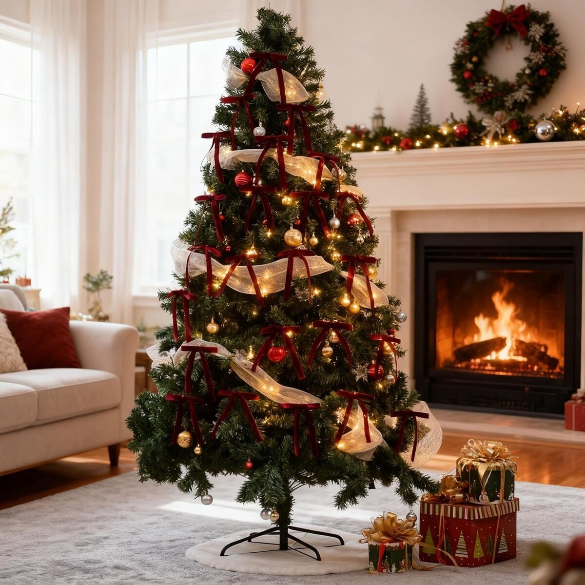 30 bows are sufficient to decorate an entire Christmas tree.The velvet texture pairs perfectly with Christmas tree.They can also be tied to Christmas stockings, Christmas wreaths, or used as fireplace decorations.