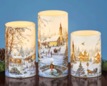 3Pc Flameless Candle Set LED Flicker Pillar Christmas Snowy Winter Village Decor
