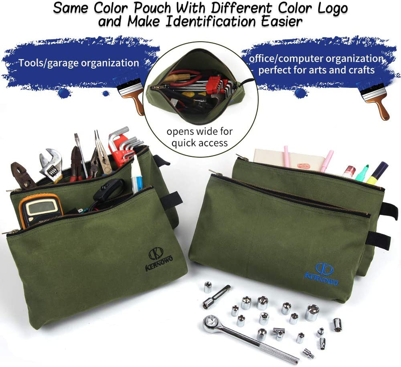 KERNOWO 4 Pack Canvas Zipper Tool Pouches are a must have for anyone who enjoys an organized tool bag or toolbox.