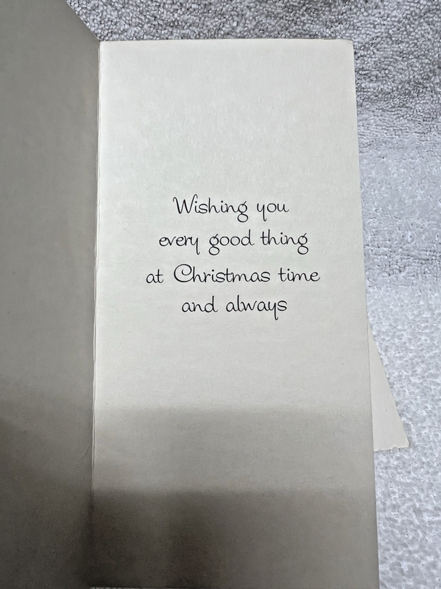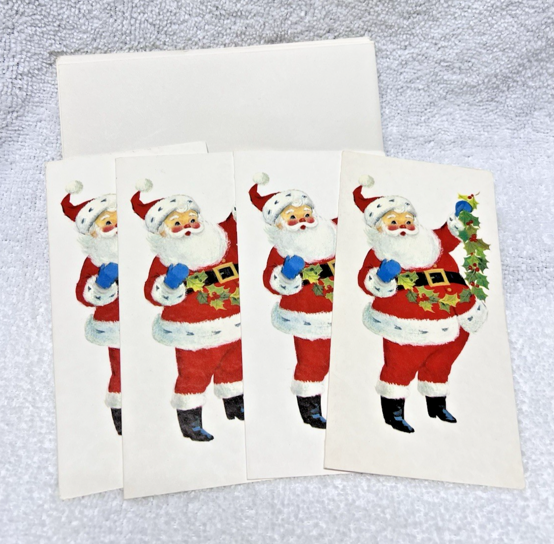 4 Vintage Christmas Cards w Envelopes Santa w Garland American Greetings 6 3/8 x 3 1/8 inches with envelopes not used but one is slightly yellowed 3 are much whiter