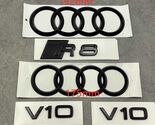 5 pcs Gloss All Black Audi R8 Emblem Set 175mm Front 192mm Rear Rings R8 Rear Ba