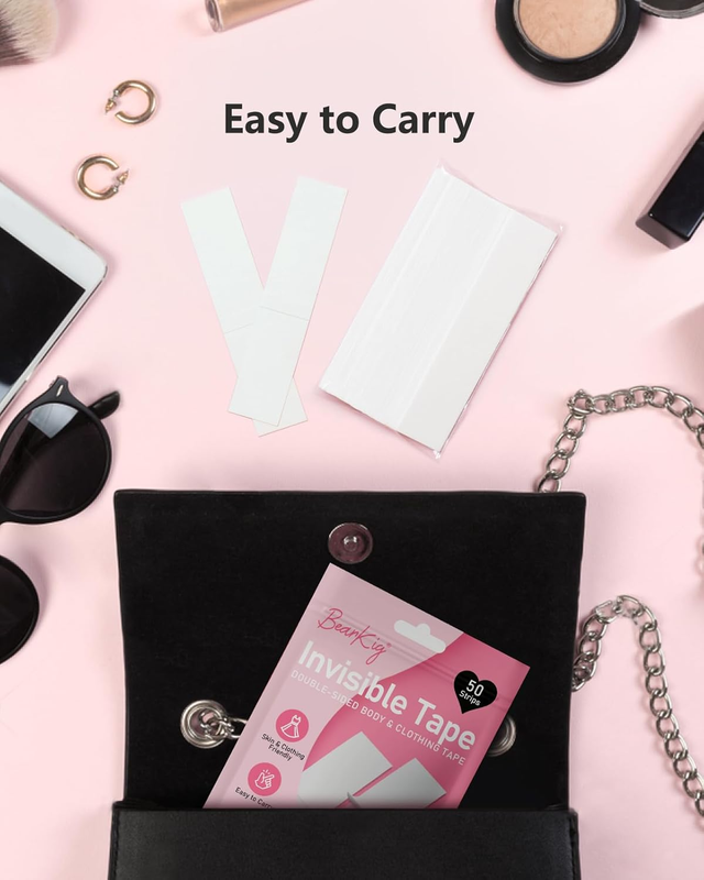 EASY TO CARRY MULTI USE TAPE: BearKig tape for fashion with a convenient 50 strips. It's so small you can easily put it in your pocket or carry-on bag, is your best companion for travel and business trips. In addition, it has a wide range of uses. Can be used for high heels or shoes in addition to women's fashion clothing, used to prevent uncomfortable friction.Also can fix men's collars, lapel, pocket, bow tie, and belt end the list goes on. Make men more neat and decent.
