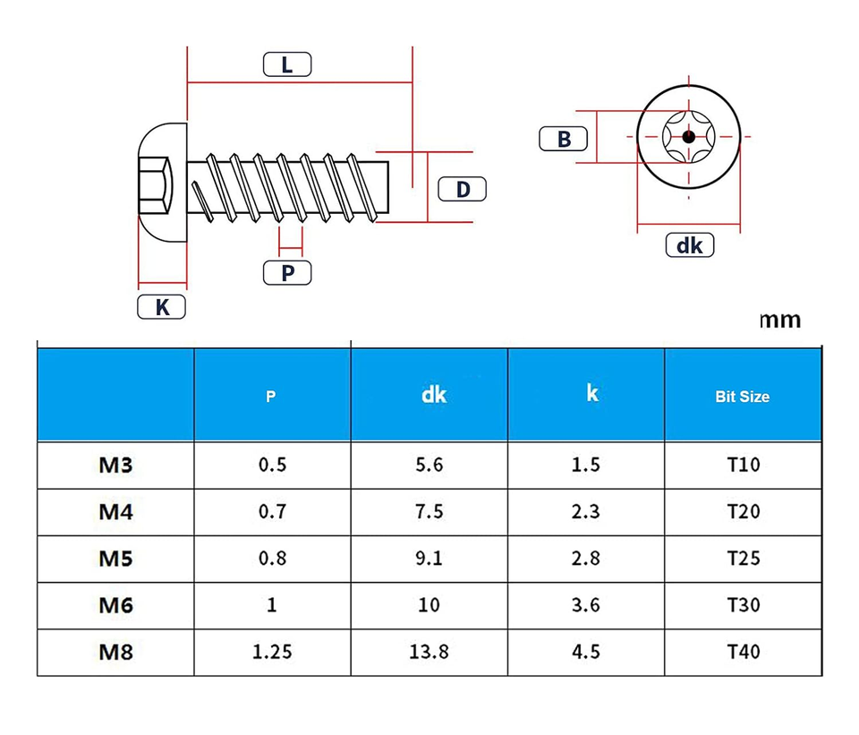M4 x 6/8/10/12/16mm |