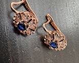 - 585 14K RG Rose Gold Stamped Natural Zircon Blue Flower Stud Earrings