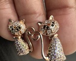 - 585 14K RG Stamped Natural Zircon Kitty Cat Stud Earrings