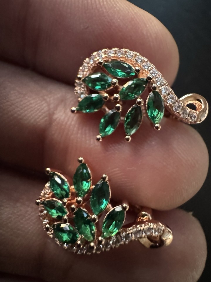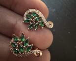 585 14K RG Rose Gold Stamped Vine Ivy Green Crystal Stud Earrings