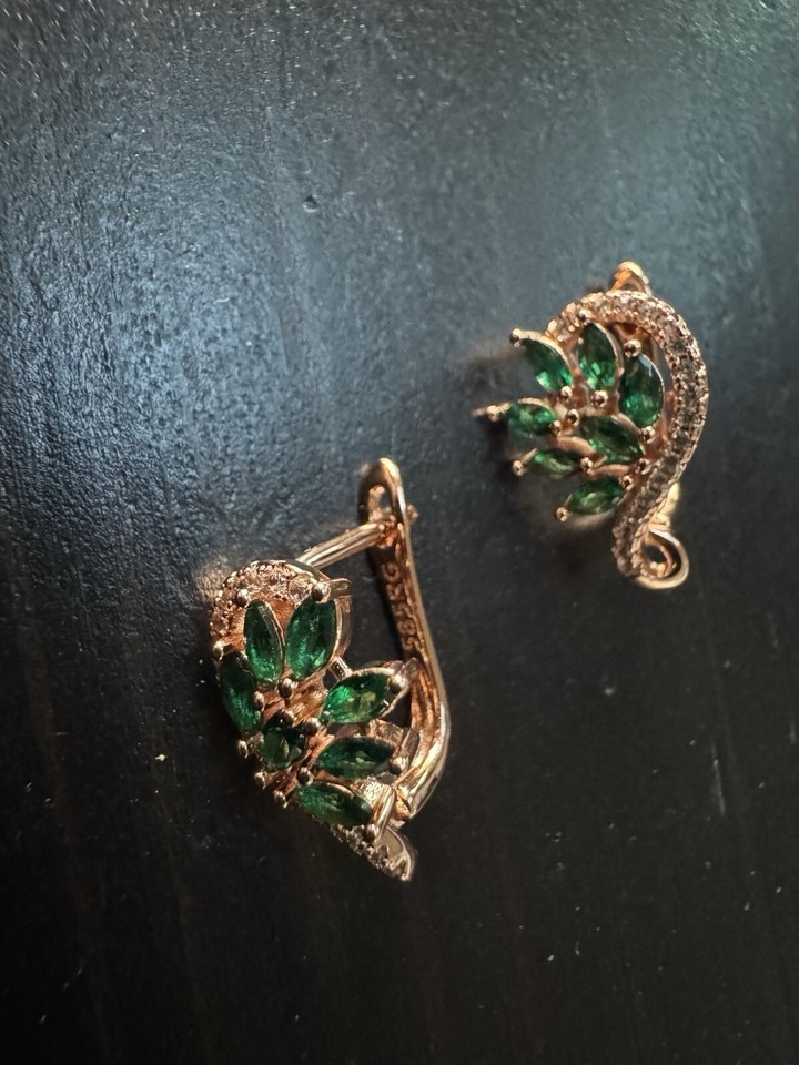 - 585 14K RG Stamped Vine Ivy Green Crystal Stud Earrings
