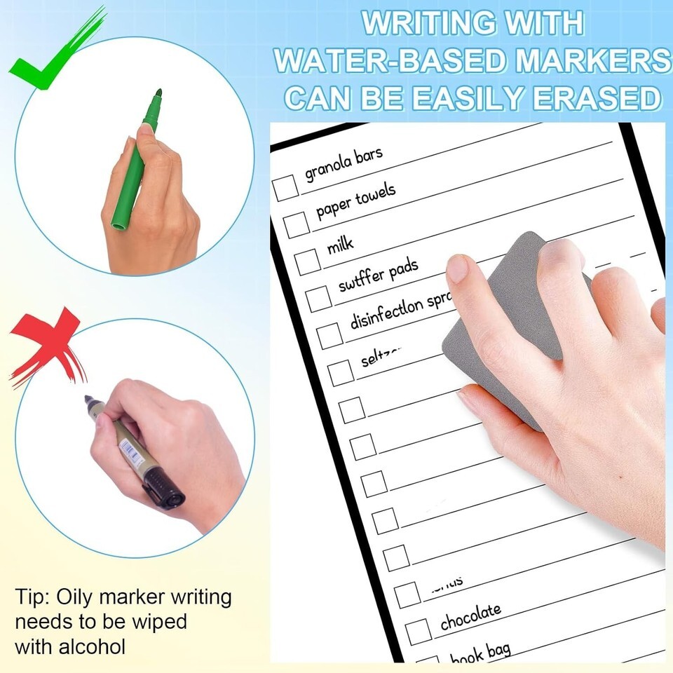 HIGH-QUALITY SURFACE FILM: Each dry erase planner is coated with high-quality PET soft film, which is not easily damaged by layering and has a smooth surface that can be washed with water. You can use a multi-color erasable pen for marking and writing, erasable properties mean that you can delete content at will without leaving a trace(Tips: it is not recommended to use oily markers for writing, it is not easy to erase, if this happens, please use alcohol tablets or spray alcohol for wiping).