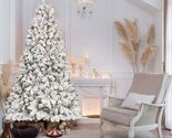 8FT Flocked Pre-Lit Christmas Tree, 700 Lights, Snowy Pine Cones