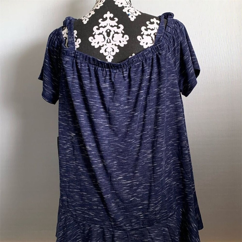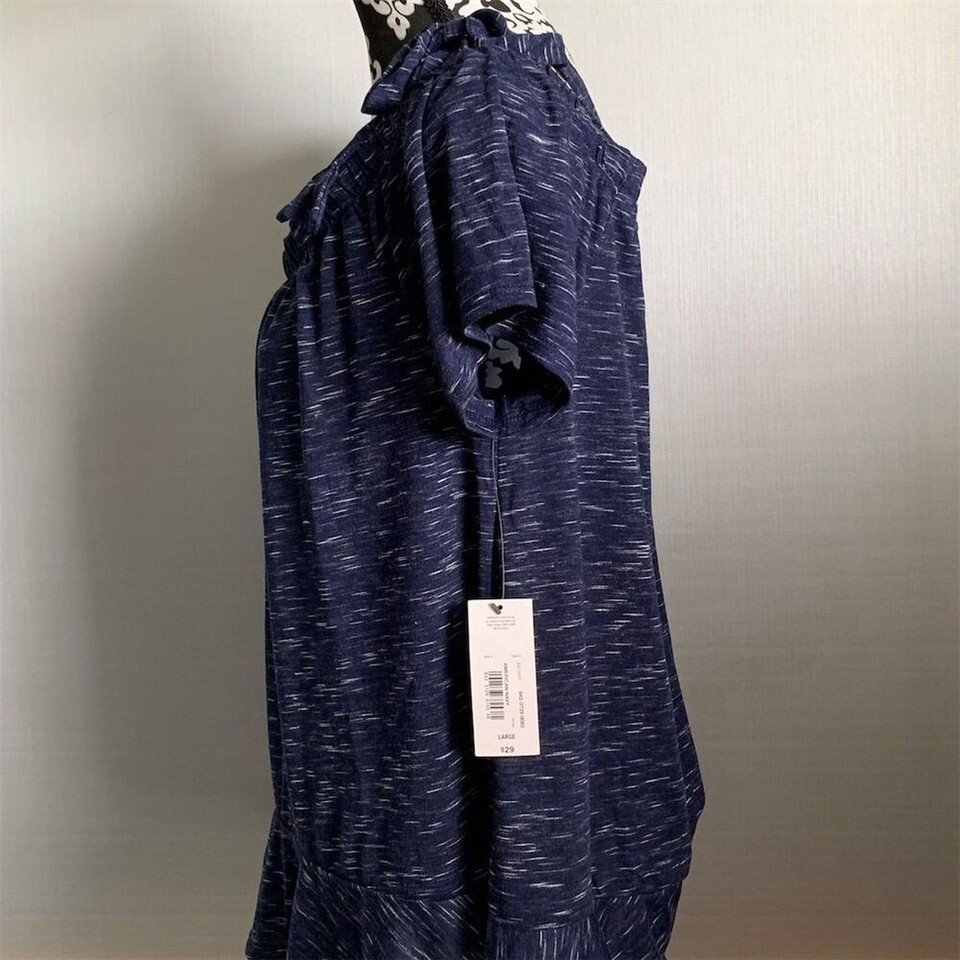 Keywords: women's blouse, sleeveless top, blue blouse, A.n.a. blouse, polyester blend, peasant hem, solid pattern, straight neck, knit fabric, stylish blouse, comfortable top, regular fit, women's fashion, new with tags, size L