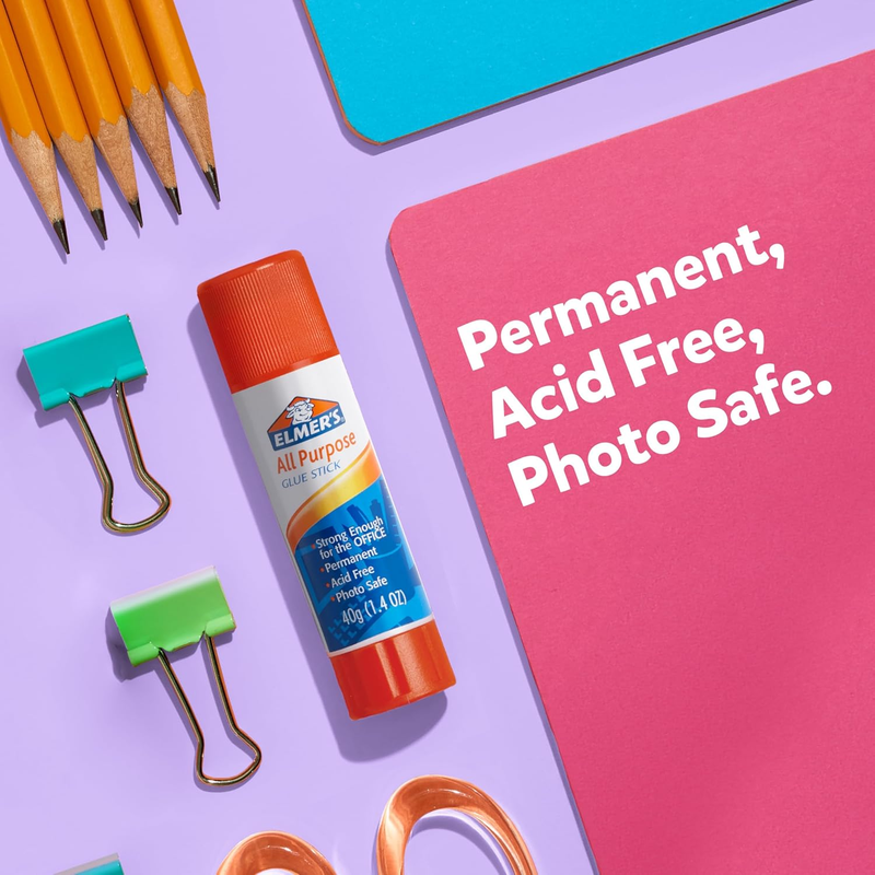 --Elmer's All Purpose Glue Stick is a favorite for easy, no-mess bonding. The All Purpose formula bonds clear and strong and works on a variety of paper types, including cardboard, foam board, display board, computer paper, and more. Elmer's All Purpose Glue Stick goes on smooth and dries fast, clear and colorless. It is acid-free, washable, safe and non-toxic.