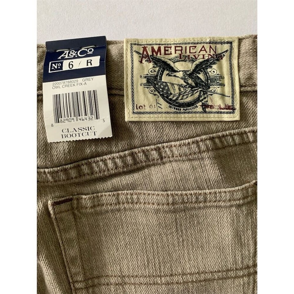 Keywords: American Living, bootcut jeans, women's jeans, size 6 jeans, brown jeans, mid-rise jeans, cotton jeans, elastane jeans, 32-inch inseam, 29-inch waist, women's fashion, Thailand-made jeans, new with tags, NWT jeans