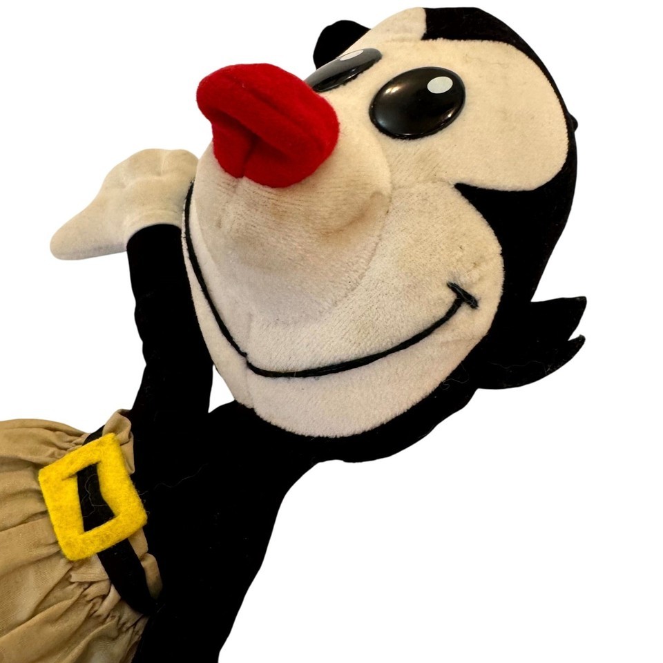 Authentic 1995 Animaniacs Yakko Warner plush by Play By Play. Soft stuffed toy with classic embroidered features and stitched clothing. Light surface soiling on gloves, snout, and pants but no rips, holes, or structural damage. Tags attached (Warner Bros. / Play By Play). Great display piece for any 1990s animation fan or collector.