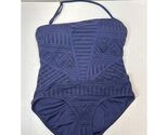 Anne Cole Blue Eyelet One Piece Swimsuit Strapless Halter Womens Size 10