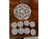 This antique lace set from Belgium is a beautiful addition to any collection. The floral pattern and round shape make it suitable for all occasions, including as table top decorations. The largest is 17 inches across and has 6 matching coaster, and 3 snowflake shape, and the smallest coaster is 5" in diameter. These original handmade lace doily+coasters feature intricate handwork. Despite being vintage, they are in excellent condition and can be used for years to come.(two of them are discolored and may have been used, not sure). Includes the original store bag from Pickery Soudant, Brugge.LOVE RETRO!