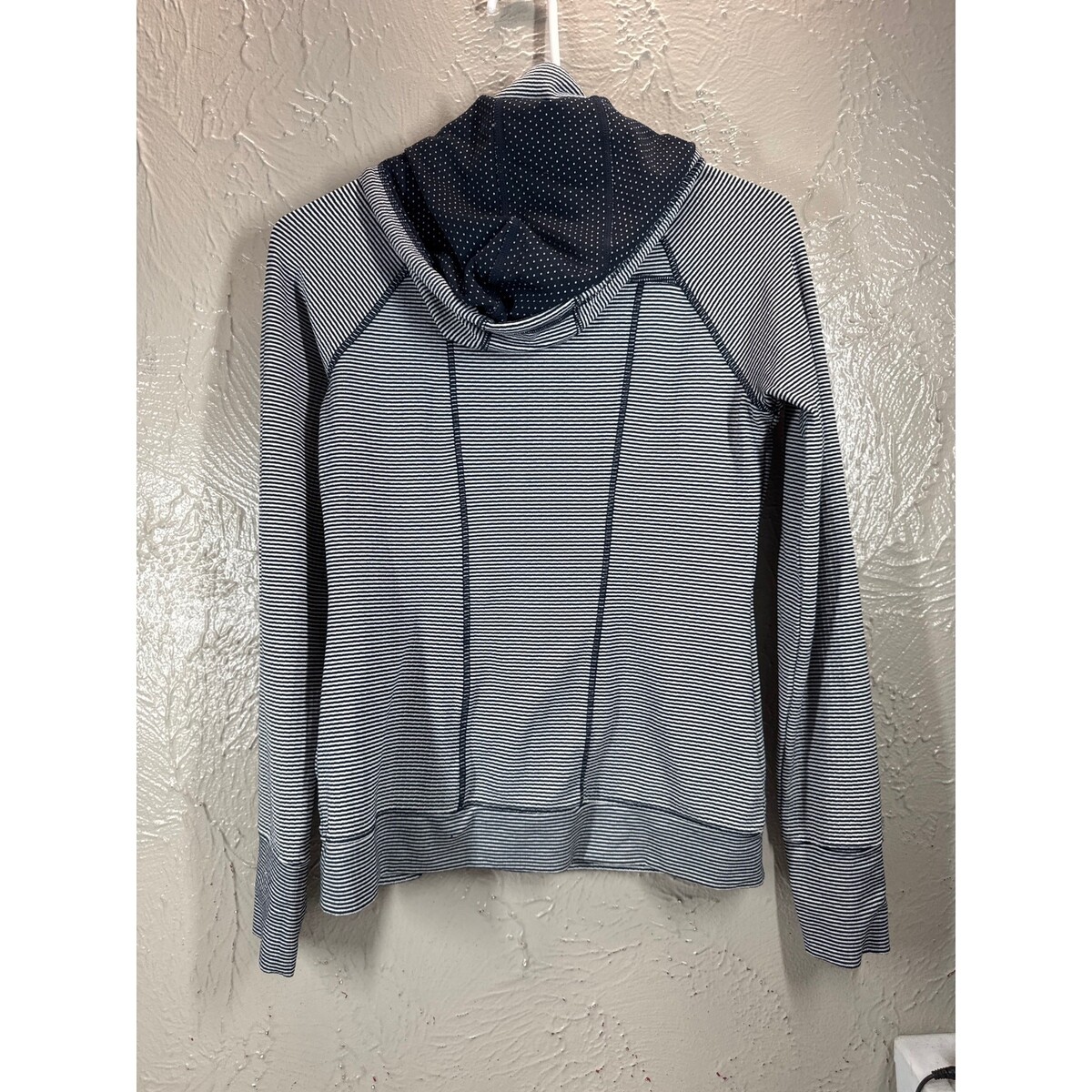 - Athleta Heavenly Hail Hoodie 3 Navy Blue White Striped Raglan Sleeve Size XXS