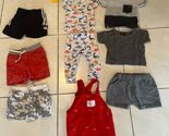 Baby Boy Summer Clothing Lot ? Approx Size 12 Months (1 Year) Includes: - Black athletic-style shorts with white side stripe - Red / coral cargo-style shorts - Gray camo knit shorts - White short-sleeve T-shirt with colorful dinosaur print - Gray short-sleeve T-shirt with black pocket - Red overalls / romper with car print Brands: Mixed retail children?s brands Condition: Gently used. All items appear clean with no major stains, holes, or damage. Some wrinkling from storage. Season: Warm-weather ? ideal for spring and summer wear. Lot Type: 6-piece bundle ? perfect for daily playwear or hand-me-downs. Size note: Estimated 12 months based on visual scale. Please ask if you?d like close-up photos of size tags or measurements. Shipping: Free shipping included. Thank you for looking! Please feel free to message me for more photos or details.