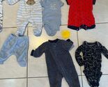 Primary image for Baby Boy Clothes Lot NB-3M 6pc Sleepers Rompers Sleep Suits Mixed Prints