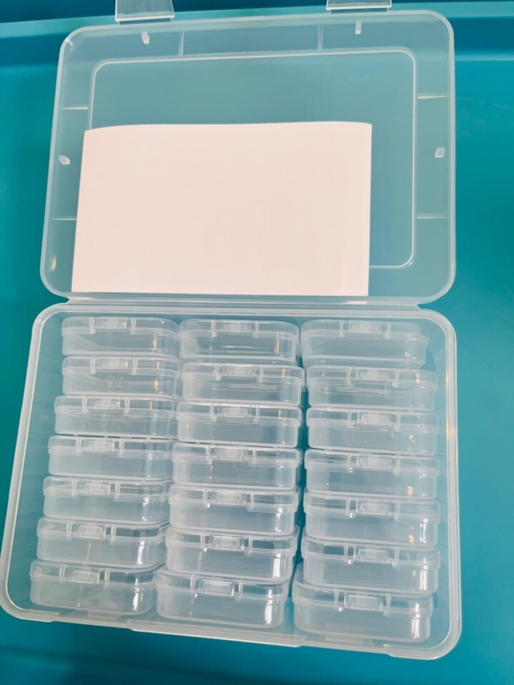 About this item PACKAGE INCLUDE: 1 large Outer storage box + 21 small inner storage boxes. The outer box size is 6.5" L x 4.7" W x 2.36" H, the Inner box size is 1.96" L x 1.96" W x 0.59" H. ECO-MATERIALS: These clear container boxes are made of high-quality non-breakable plastic, which is durable and has a smooth and clean surface. You can sort and sort different items with these bead accessory organizers. The contents of the transparent container are clearly visible, allowing you to find what you need quickly and easily. ORGANIZATIONALLY EFFICIENT: These organizers are a great way to keep your small items neat and tidy. You can use them to store beads, jewelry, craft supplies, or any other small items you want to keep organized. The clear boxes allow you to easily see what's inside, and the hinged lid keeps the contents clean and secure. VERSATILE APPLICATIONS: These organizers can be used for a wide range of purposes. In addition to storing beads and jewelry, they can also be used for storing craft supplies, stationery, office supplies, or any other small items that need to be organized. AESTHETIC APPEAL: The transparent design of these organizers allows them to blend in with any decor, while the colorful stickers or personalized text designs you can add give them a personalized touch, making them not only functional but also visually appealing.