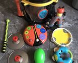 The Bee Bop Band is a set of 10 pieces that includes a container and lid, perfect for children who are interested in music and art. It provides a fun and interactive way for kids to explore and create their own musical compositions. With the included container and lid, children can easily organize and store their instruments while on the go. This set allows kids to engage in creative play and develop their musical talents in a playful and engaging way.