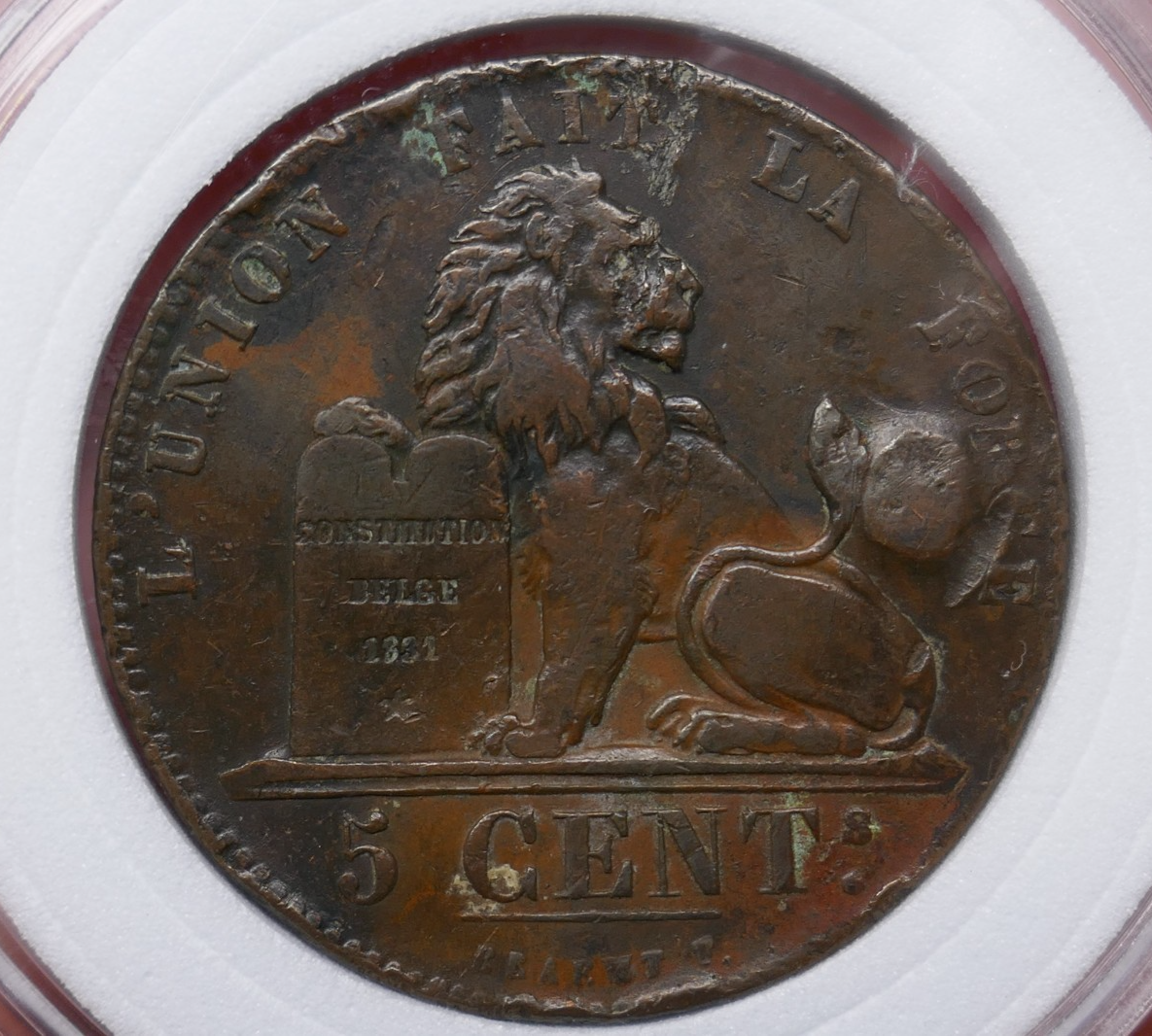Belgium 1831 Léopold I Copper 5 Centimes Cent Coin