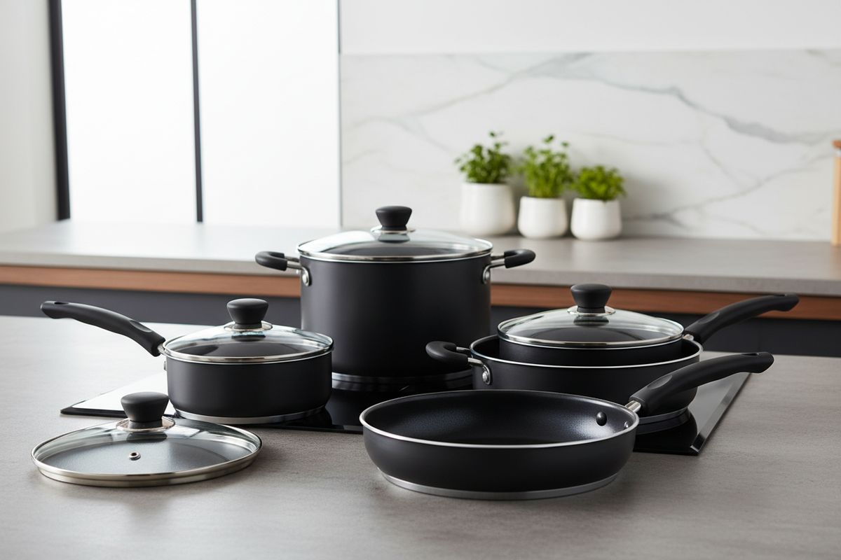 Key Features: Includes pots and pans in various sizes for versatile cooking needs, all with non-stick interiors for healthy, low-oil meals.