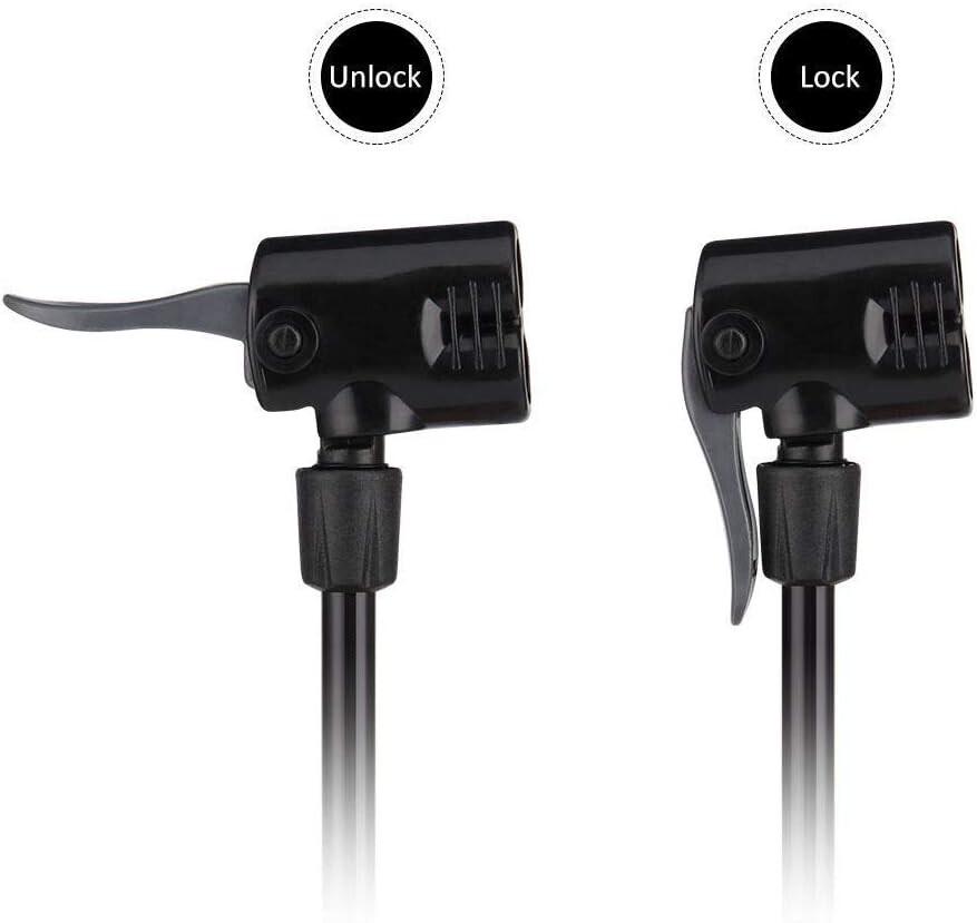 ??Multifunctional Twin Valves?Newly designed valve head can easily switch between Presta and Schrader valves and without any air leaks. The tire pump can inflate for bicycles, electric vehicles, motorcycles, sports balls and swimming rings.