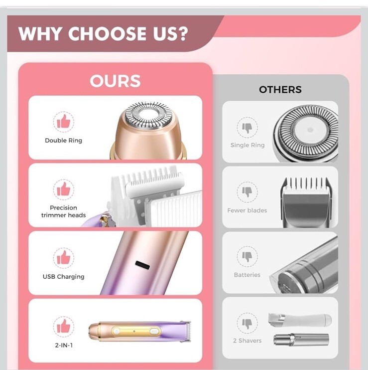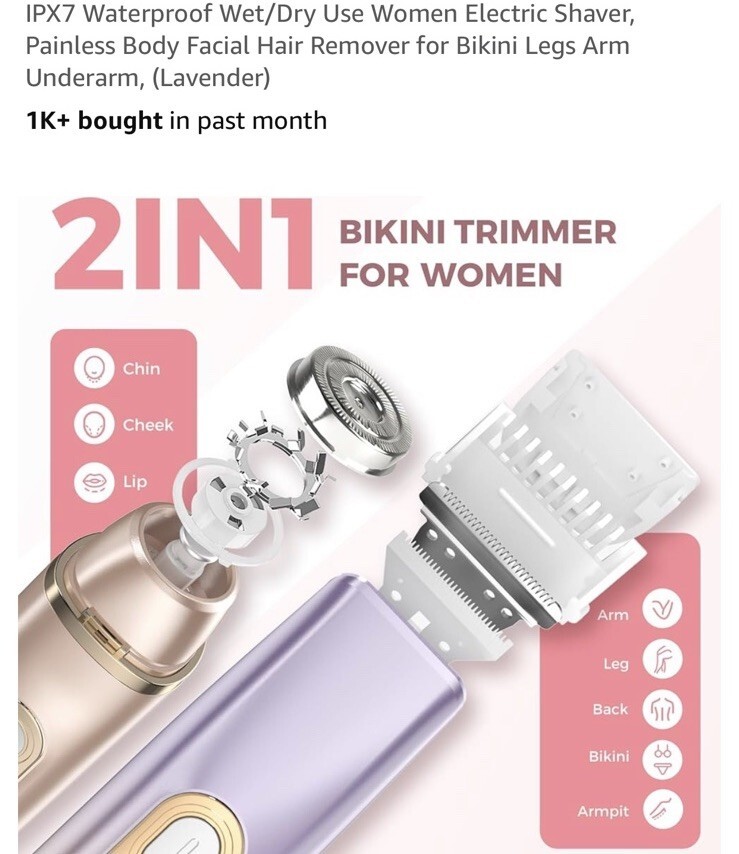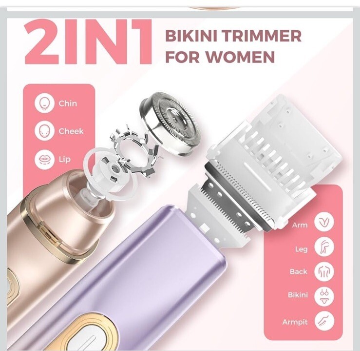 - Bikini Trimmer for Women, Electric Razors with Dual Heads, Rechargeable Pubic...