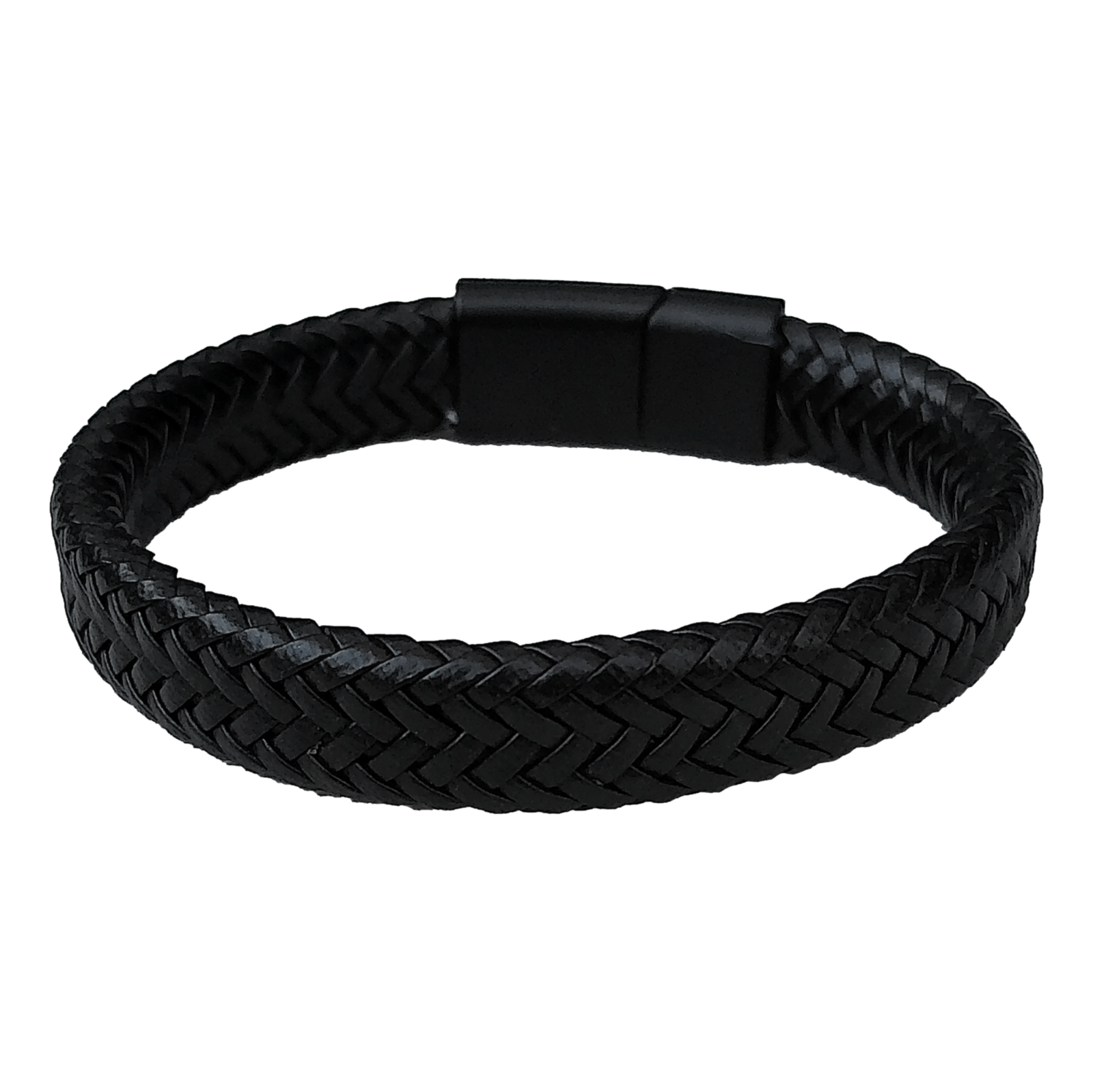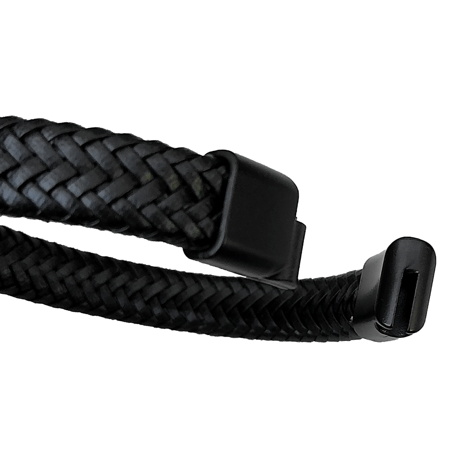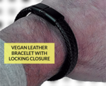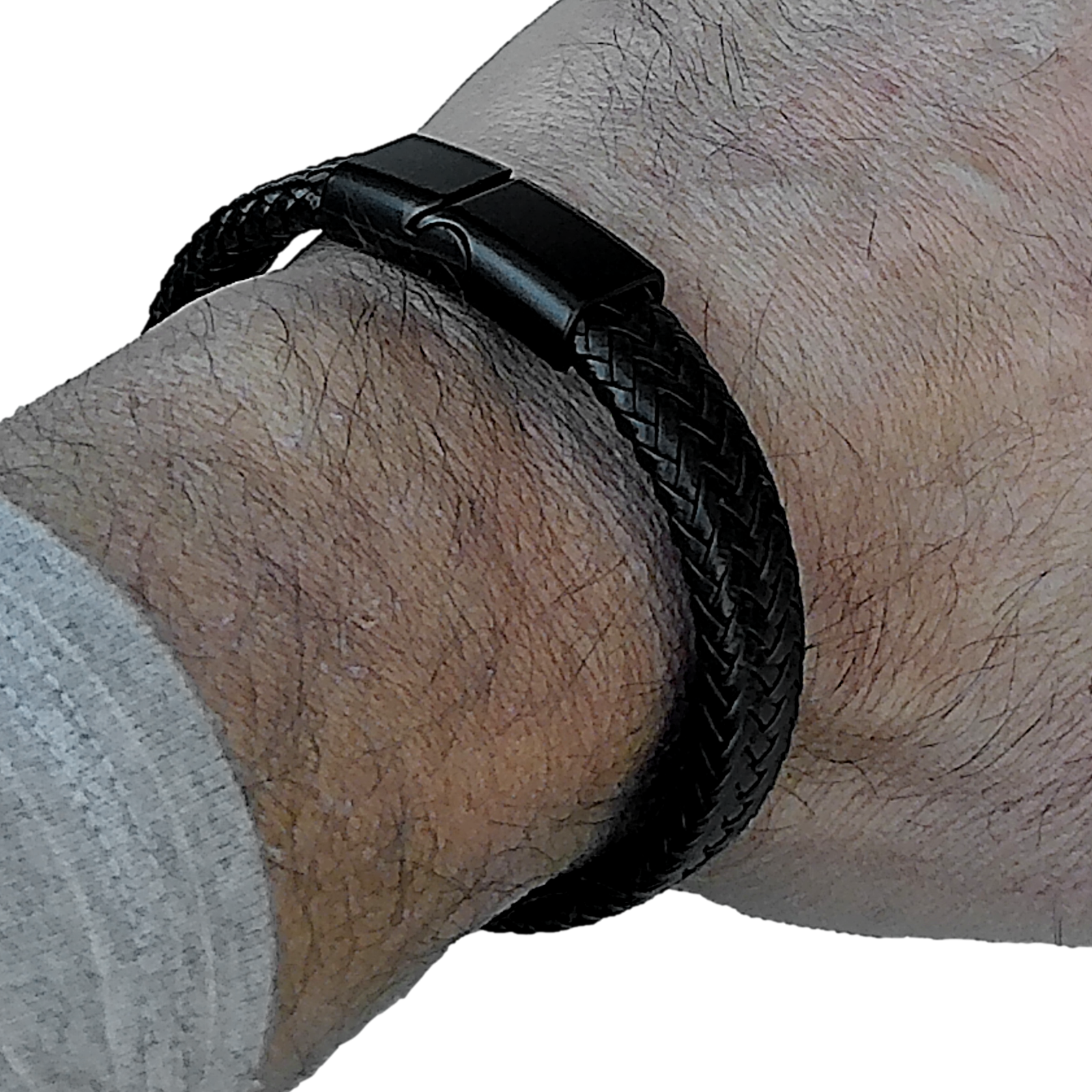- Black Vegan Leather Bracelet Braided Strap with Safety Clasp Minimalist Boho