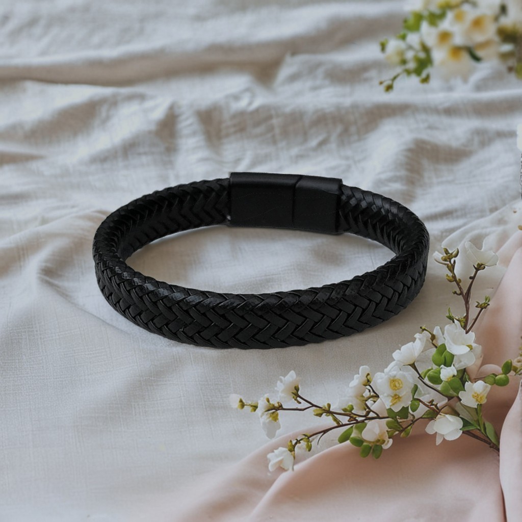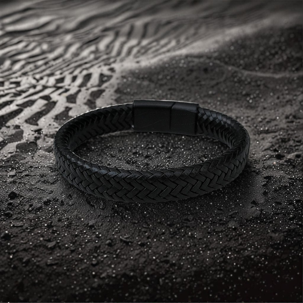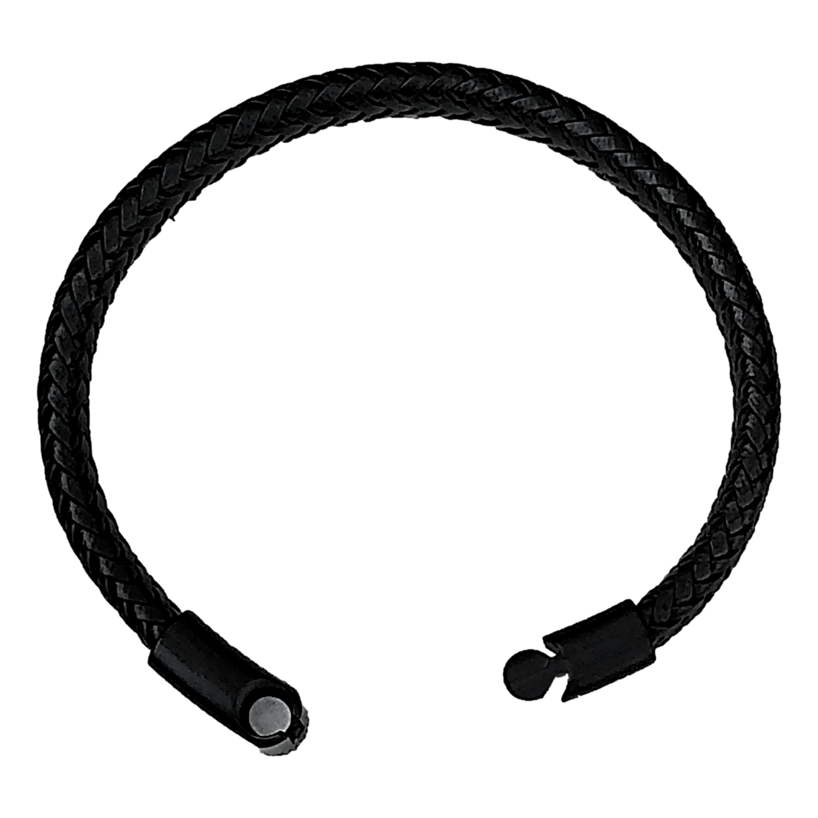 This USA DEALS NOW bracelet features a braided vegan leather strap in classic black ? lightweight, durable, and built for everyday wear. Whether you're going for a modern minimalist look or a laid-back boho vibe, this piece adapts to your style.