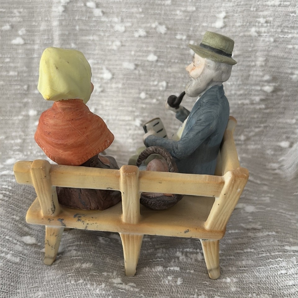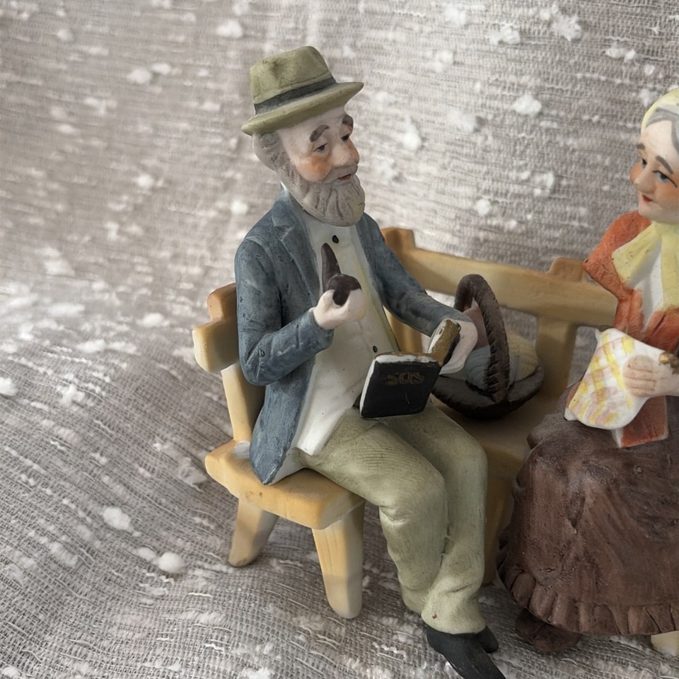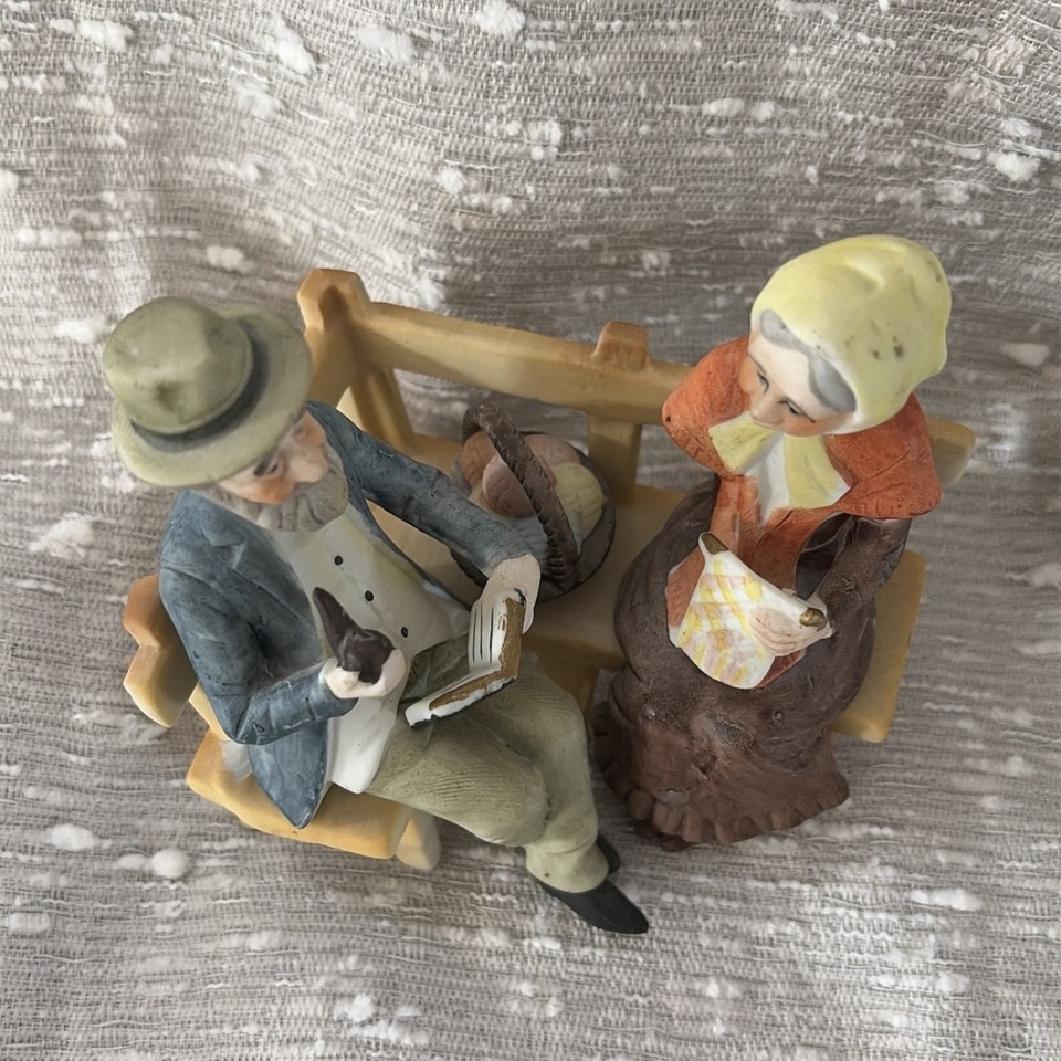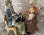 - Bone China Figurine Older Couple On Bench Hand Painted Vintage