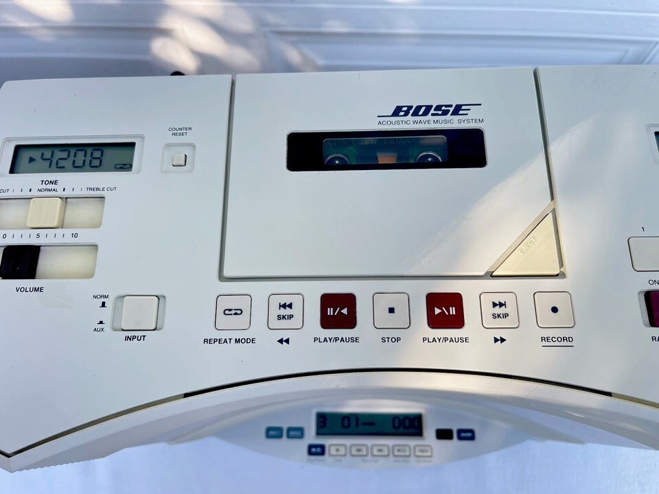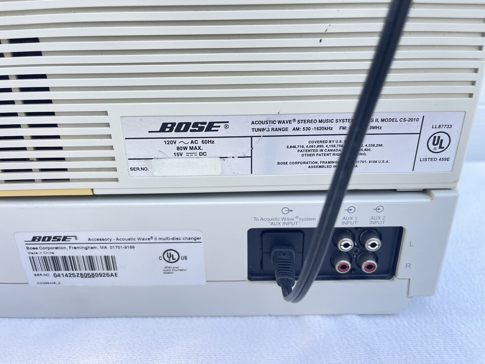 Unit is fully tested and fully functional. The Bose Acoustic Wave Music System Series II Model CS-2010 is a beige compact stereo system that plays cassette tapes. With a sleek design and advanced features, this unit offers high-quality audio reproduction perfect for any home audio setup. The inclusion of a multi-disc changer allows for easy switching between different cassette tapes, while the AM/FM radio band ensures access to a variety of programming. Whether you're a audiophile or simply looking for a reliable music system, the Bose CS-2010 delivers top-notch performance and style.