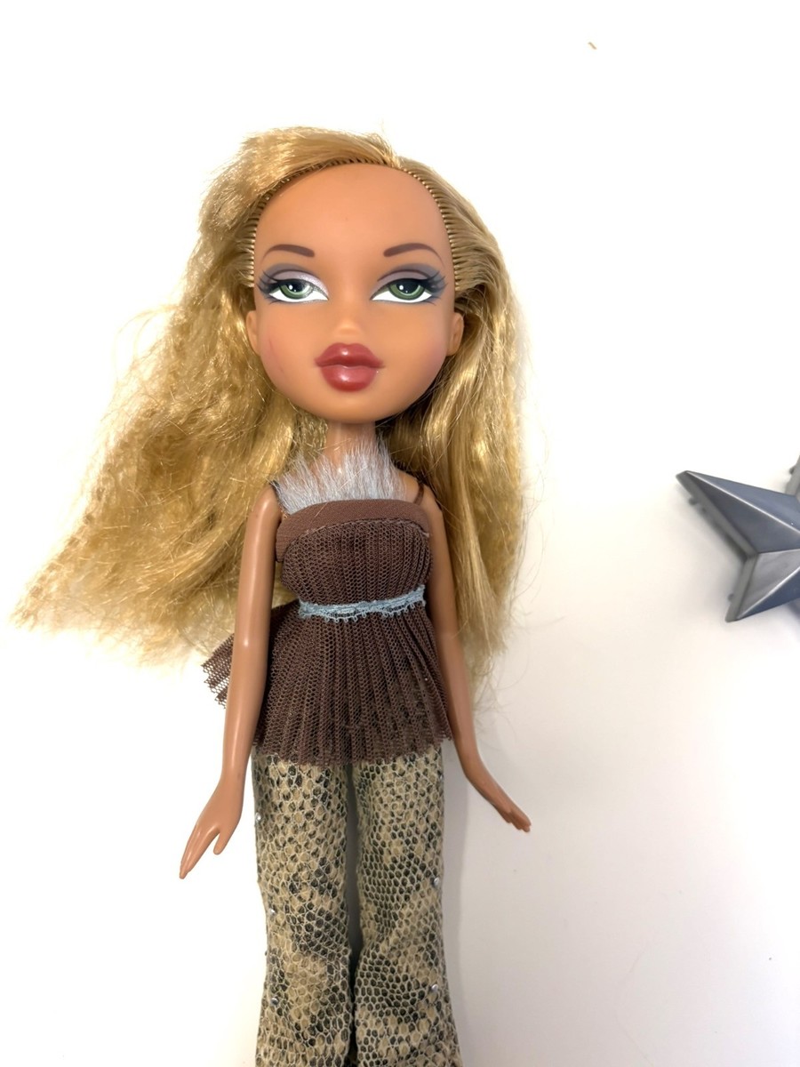 Bratz Fianna Doll Wearing Snake Skin Pants Cloe Nighty-Nite Shirt. The doll and clothing are in good, clean, pre-owned condition. Calculated shipping is applied to cart when you purchase multiple items.