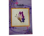 This hand embroidery kit titled "Butterfly" is designed by Marnie Ritter and published by Accord Publishing Ltd. It features a delicate butterfly design executed in surface embroidery technique. The kit includes a pre-printed Zweigart Jubilee fabric (28 count) with the butterfly outline already stamped, ready for stitching. The finished stitched piece measures approximately 3.75 inches by 3.75 inches, and when framed, it fits into a 9 inch by 9 inch frame, designed by Milena Kirkova. Requires DMC threads in colors 553, 3746, 370, and 917, along with Kreinik #002 Gold Tapestry Blending Filament for metallic accents. The instructions provide detailed stitch guides for the specific stitches used: Stem/Outline Stitch (1 strand DMC 370), Fishbone Stitch (1 strand DMC 370), Straight Stitch (1 strand doubled = 2 working strands of Kreinik Gold), Shaded Buttonhole Stitch (1 strand DMC 553 and DMC 3746), and Chain Stitch (1 strand DMC 917). The kit also includes the canvas, stitch guide, and instructions in English. The packaging consists of a card with printed images and stitch diagrams. This kit offers a charming project for embroiderers interested in fine surface embroidery with a mix of thread and metallic filament on high-quality linen fabric.