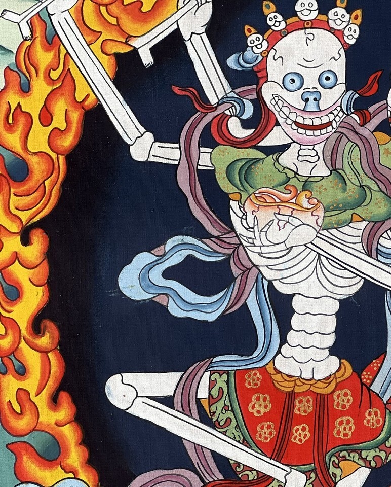 ? The Citipati Skeleton Yab-Yum Thangka is more than a painting?it is a meditation tool, a protector, and a celebration of life?s impermanence. Monks often embody the Citipati in Cham dances during Buddhist festivals, transforming these symbols into vibrant, living traditions.