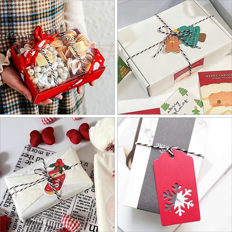 MATERIAL: This black and white bakers twine is made with high grade cotton, safety and environmental DIMENSION: Length: 656 feet(200m) Diameter of cooking twine: 2mm VARIOUS APPLICATIONS: This butchers twine is perfect for baking, butchers, Christmas gift wrapping, ornament making, holiday dacorations IDEAL FOR CRAFTS AND MORE: Beyond holiday tasks, the baker's twine is a handy tool for arts and crafts, floral arrangements, bookbinding, and school projects EASY TO USE AND STORE - Packed on a coil, it won't get tangled and easy to handle with