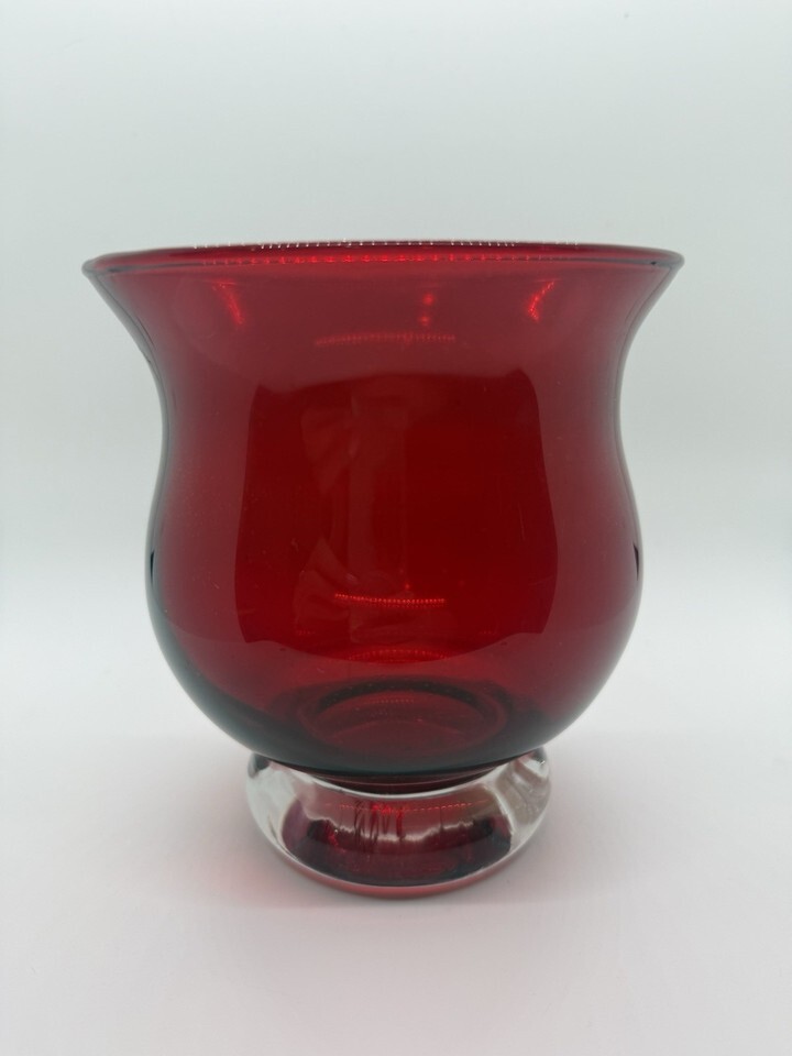 - Crate & Barrel Minuet Red Glass Hurricane Vase 5.5” Italy Candle Holder