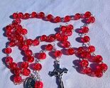 Crimson Joy ? 8mm Crackle Red Glass Rosary with Silver Crucifix
